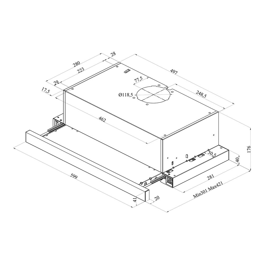 Димензии на уредот (В x Ш x Д cm): 60 x 17.4 x 42.5