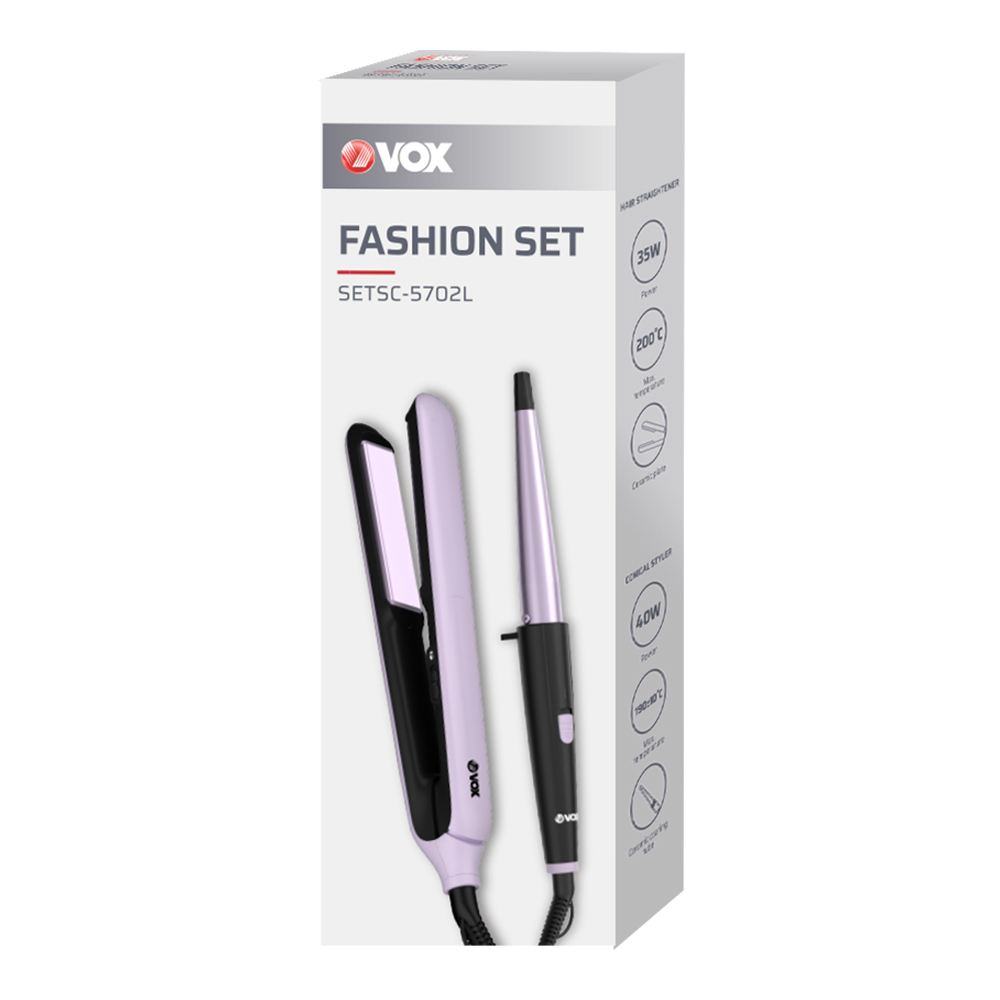 Преса за коса: Моќност: 30W, лебдечка грејна плоча, керамичка грејна зона, јамка за закачување, МАКС температура 200℃, големина на грејната плоча: 90 x 25mm.