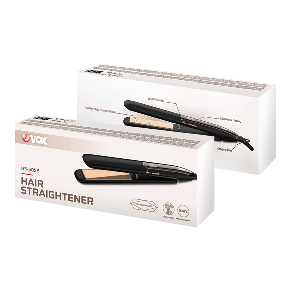 Карактеристики: Титаниум грејна плоча, Лебдечка грејна плоча, Макс температура 230℃, ИОН функција, LED дисплеј, автоматско исклучување по 1 час, функција за заклучување,