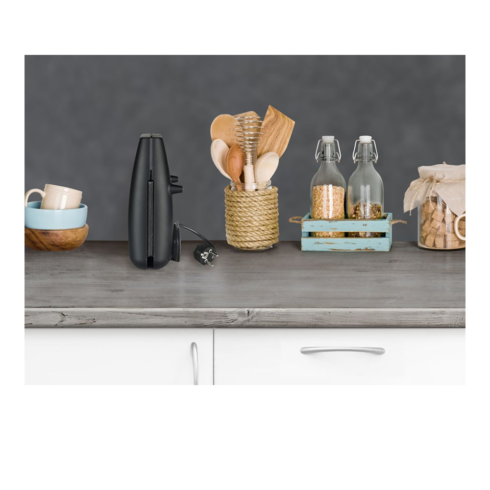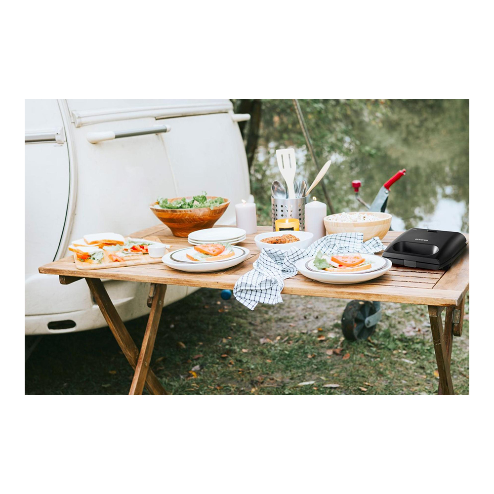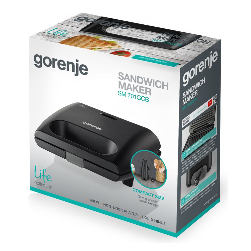 Карактеристики: складирање во вертикална позиција, затворена положба на работење, едноставно печење, ребрасти плочи за печење, фиксна тефлонска плоча за грил, конвенционален грејач, рачка за пренесување, заклучување, ладни рачки, складирање на кабелот во одреден простор, гумена подлога на сад за поголема стабилност